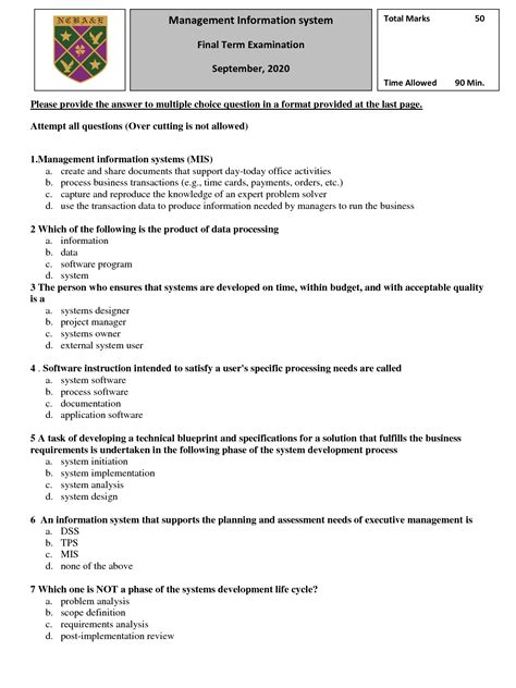 Download management information systems exam papers Reader